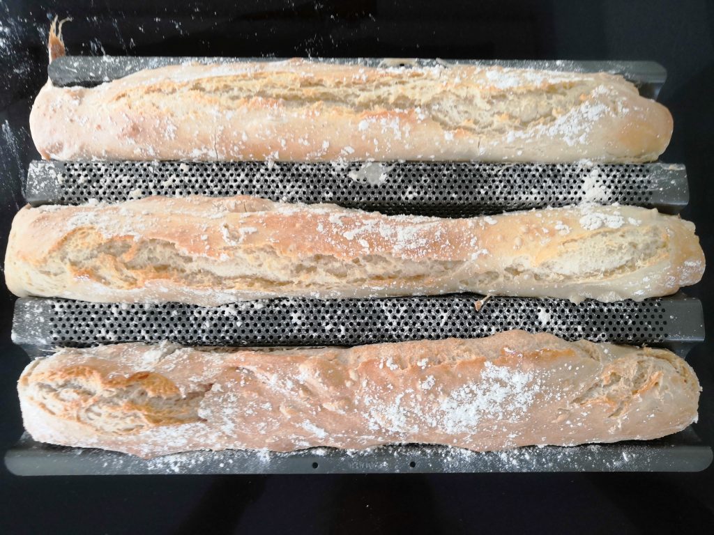 Das Beste ist, dass es nicht einmal geknetet werden muss , sondern einfach und schnell zubereitet ist. Ich verwende ein Baguetteblech aus Edelstahl um Form und optimale Luftzufuhr (auch von unten) sicherzustellen.