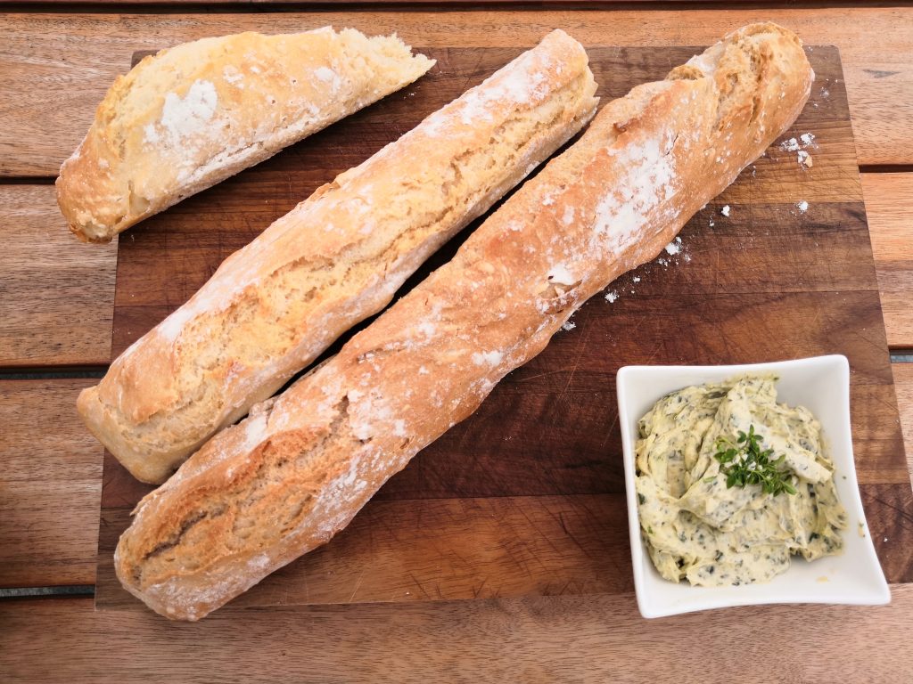 Dieses einfache und doch so leckere Rezept hab ich von Sally www.sallys-blog.de . Ich habe unzählige Varianten versucht und bin auf dieser hängen geblieben. Das Rezept ist genial. Zuhause kann ich mit gekauftem Baguette seitdem nicht mehr punkten.