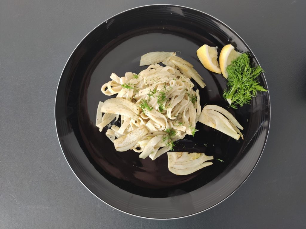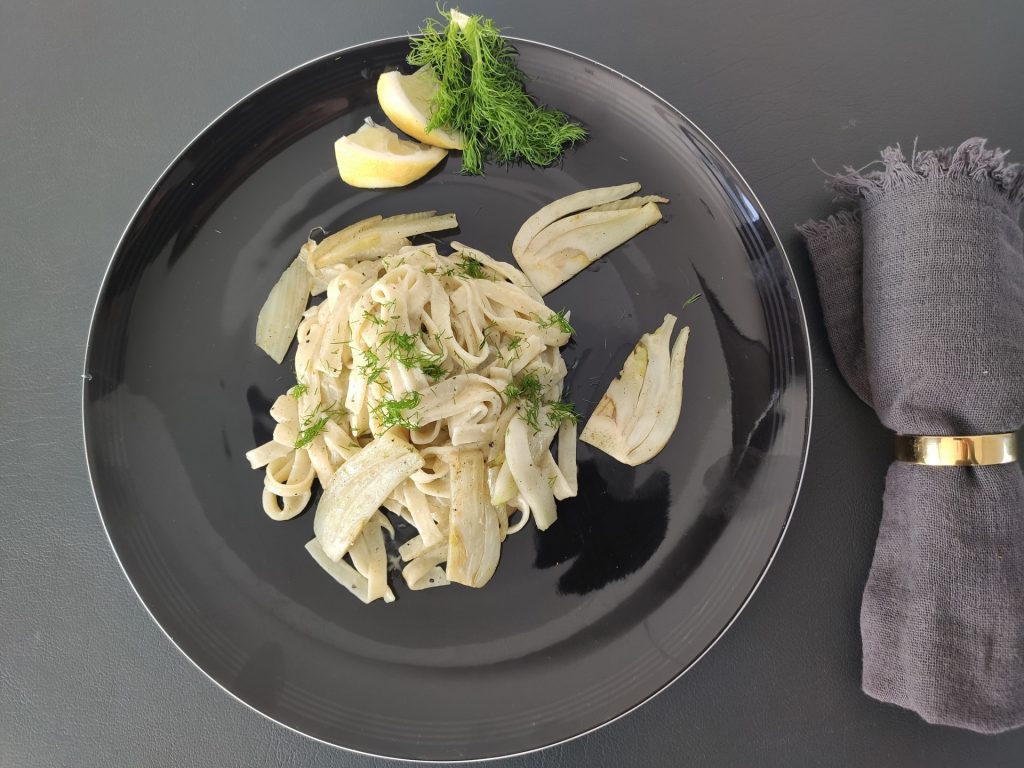 Eine Kombination von sanft gegartem Fenchel mit einer zitronigen Sahnesoße, die durch den Hauch Parmesan sämig gebunden wird.