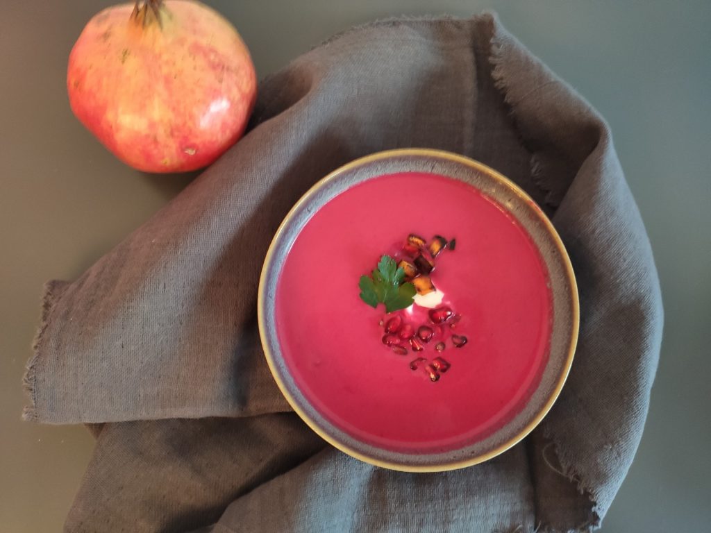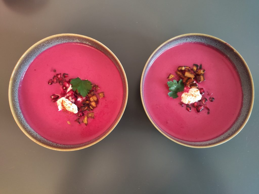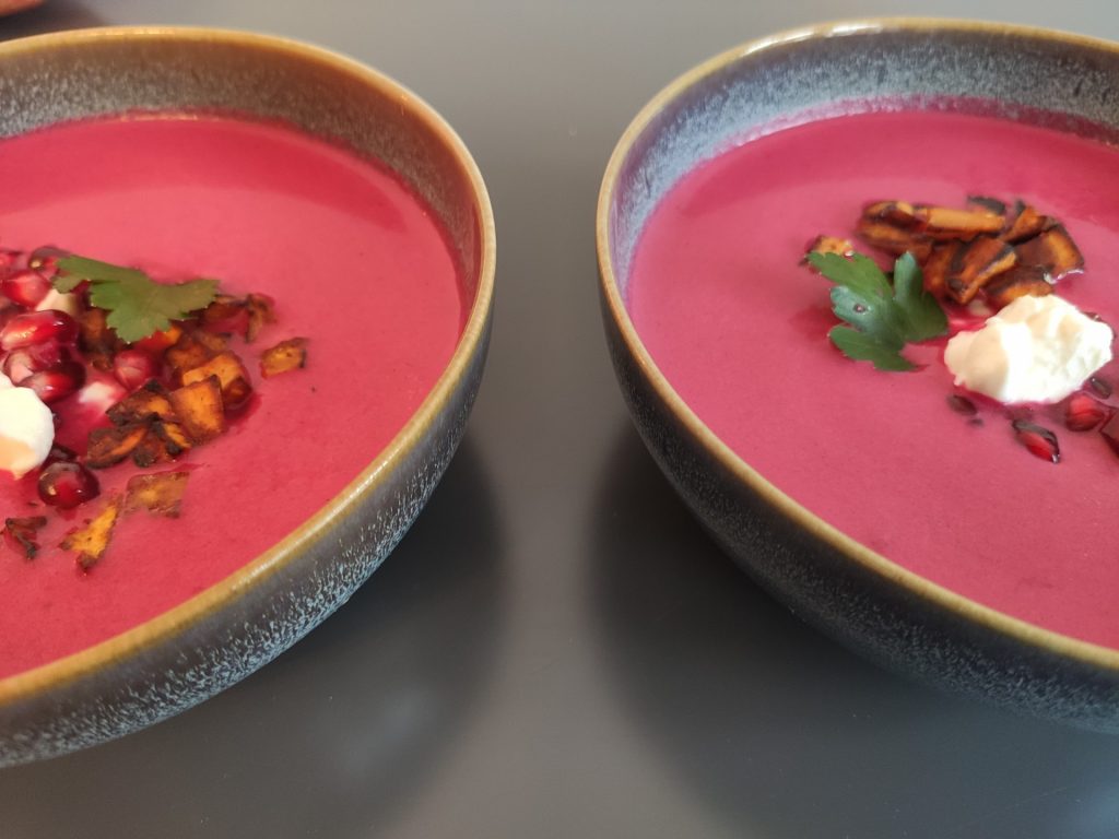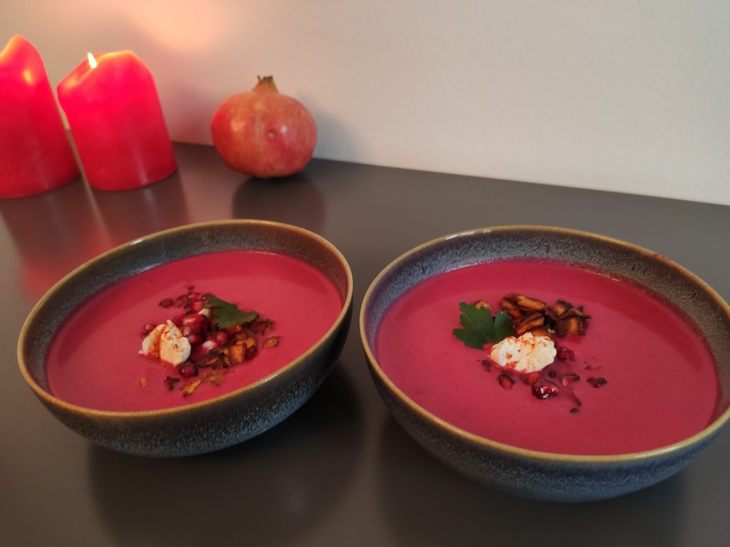 Die Idee, eine Suppe aus roter Bete zuzubereiten, habe ich vor einigen Jahren von meiner lieben Cousine bekommen. Wir saßen herrlich gemütlich bei Cafe und Kuchen beisammen. Es wurde immer später und in Gedanken überlegte ich schon, welches schnelle Abendessen ich bei meiner Rückkehr wohl aus den Resten im Kühlschrank noch zaubern könnte, da schlug Sie mir die Zubereitung einer schnellen Rote Bete Suppe vor. Diese würden aufgrund der herrlichen Farbe auch ihre Kinder essen.