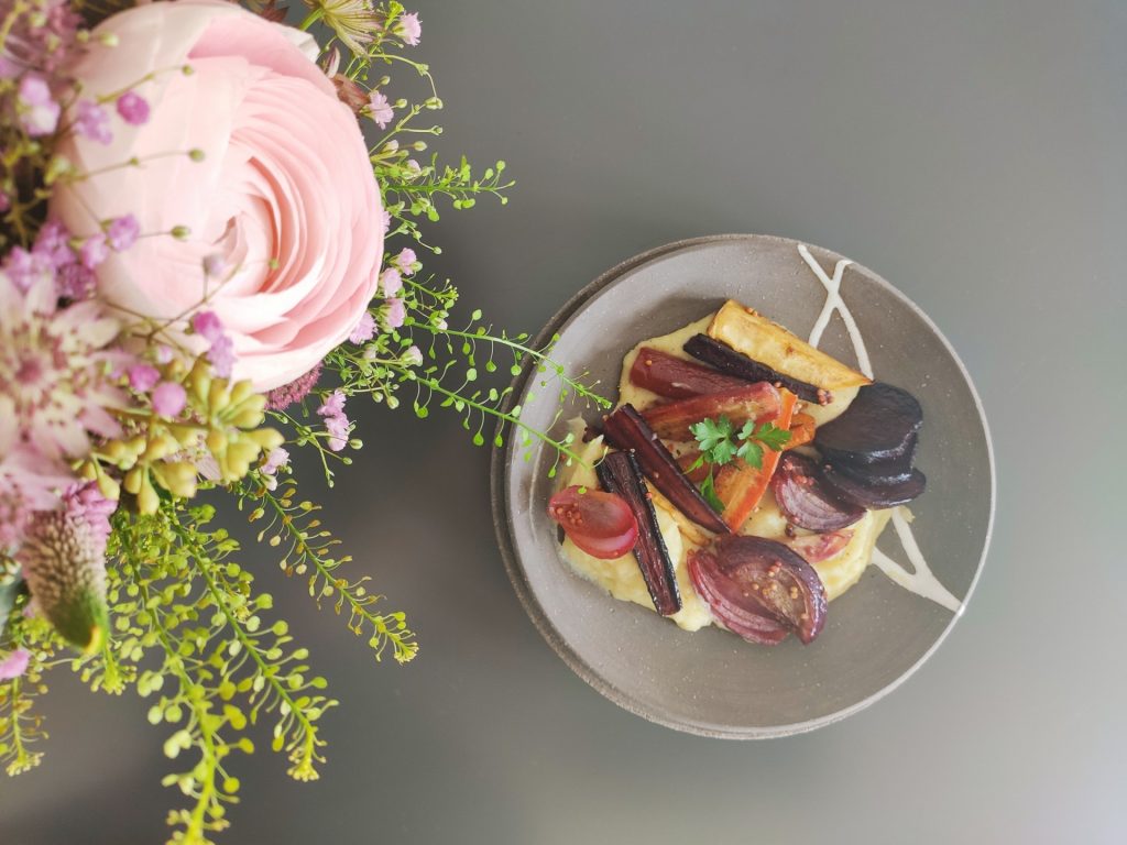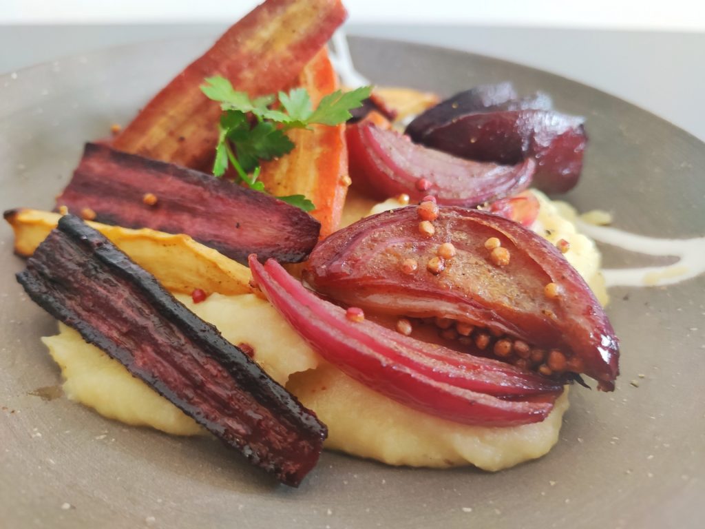 In einer Schale das Gemüse auf dem Püree anrichten und evtl. mit einigen Spritzern Zitronensaft toppen.